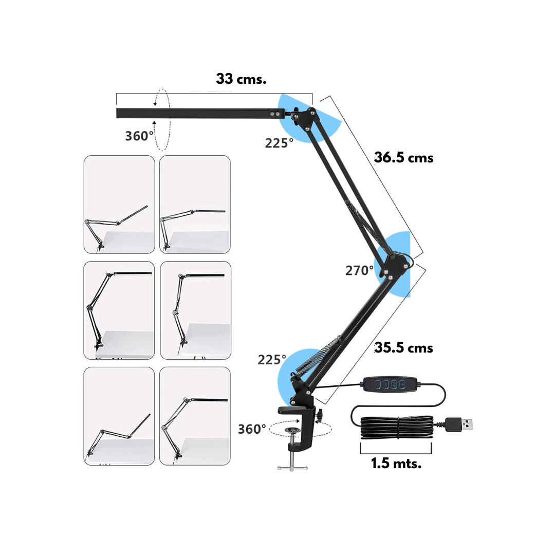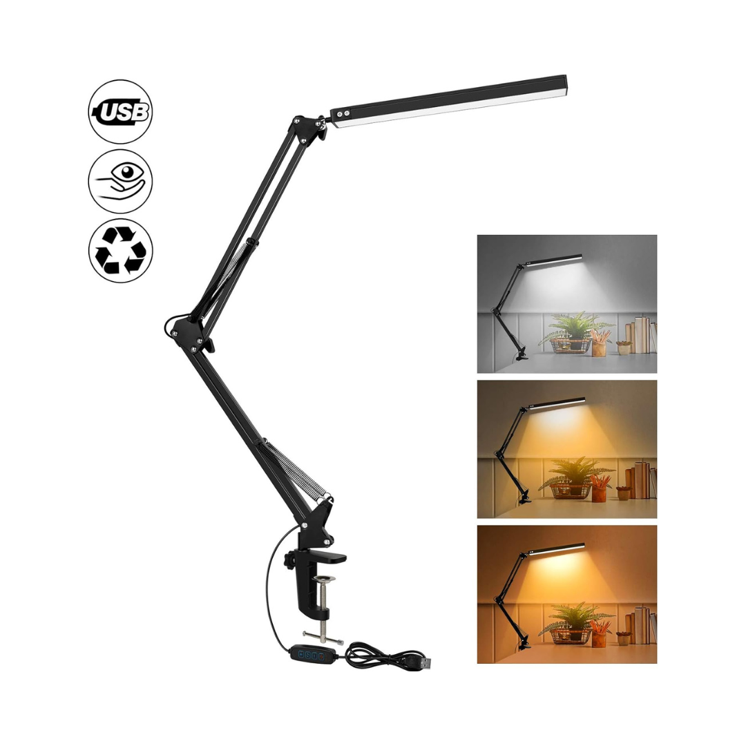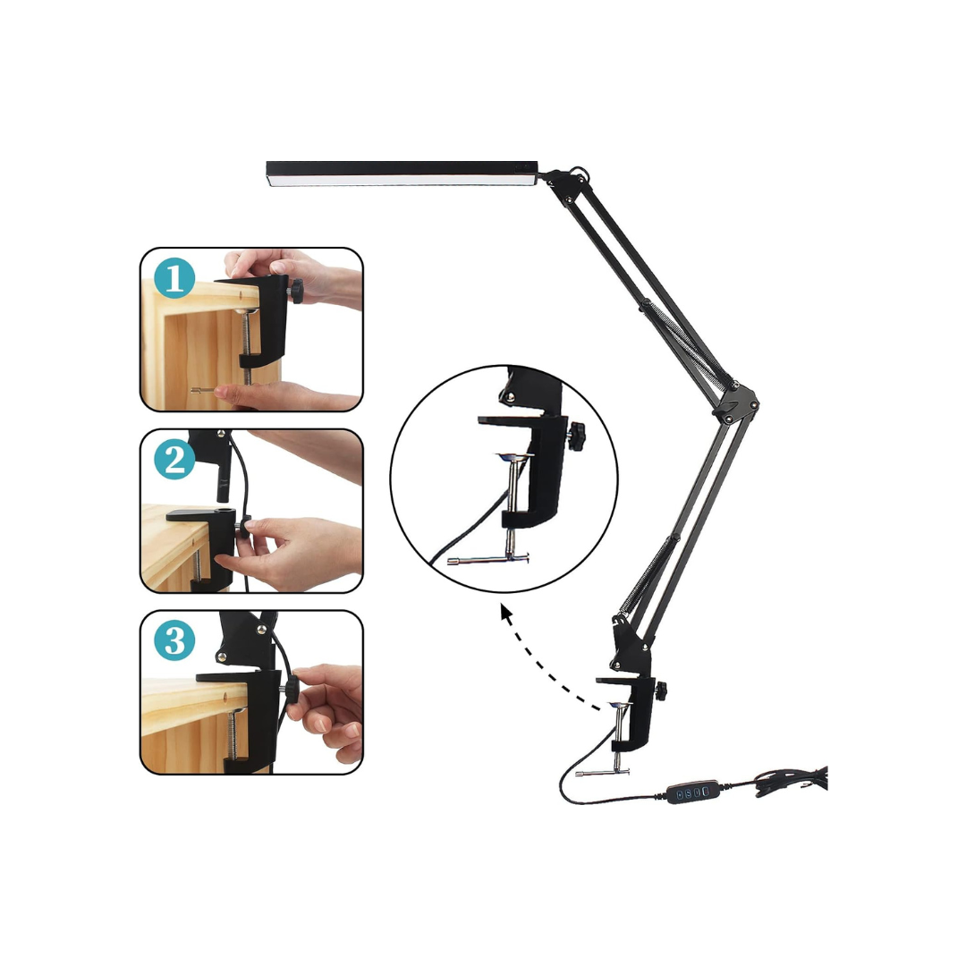3 modos de color y 10 niveles de brillo- La lámpara de escritorio con abrazadera ofrece 3 modos de luz (luz blanca, luz blanca tibia, luz blanca fria) y 10 niveles personalizados de brillo para estudio, artesanía o relajación, lectura, trabajo, pensamiento, relajación, dibujo, tejer, costura, pasatiempo, manualidades, tatuajes, uñas, etc