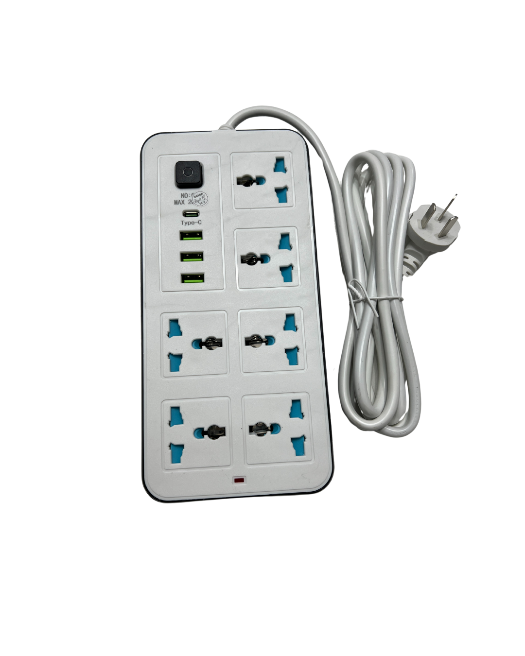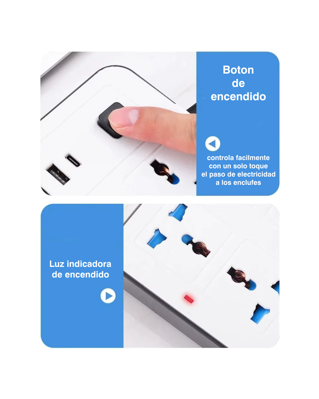 Zapatilla Prolongador 6 Tomas 3 USB 1 Tipo C con Boton de encendido/ apagado