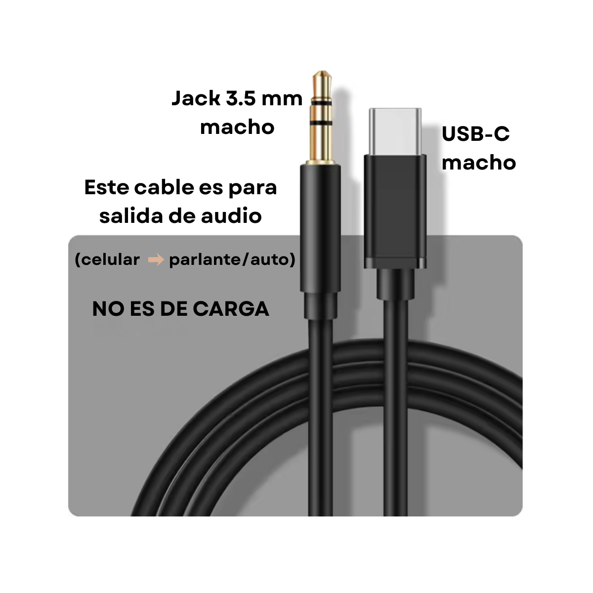 ATENCIÓN: Este cable es para salida de AUDIO (celular a parlante/auto). No es un cable de carga.