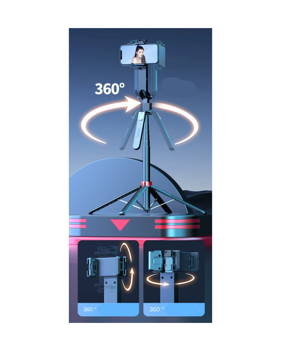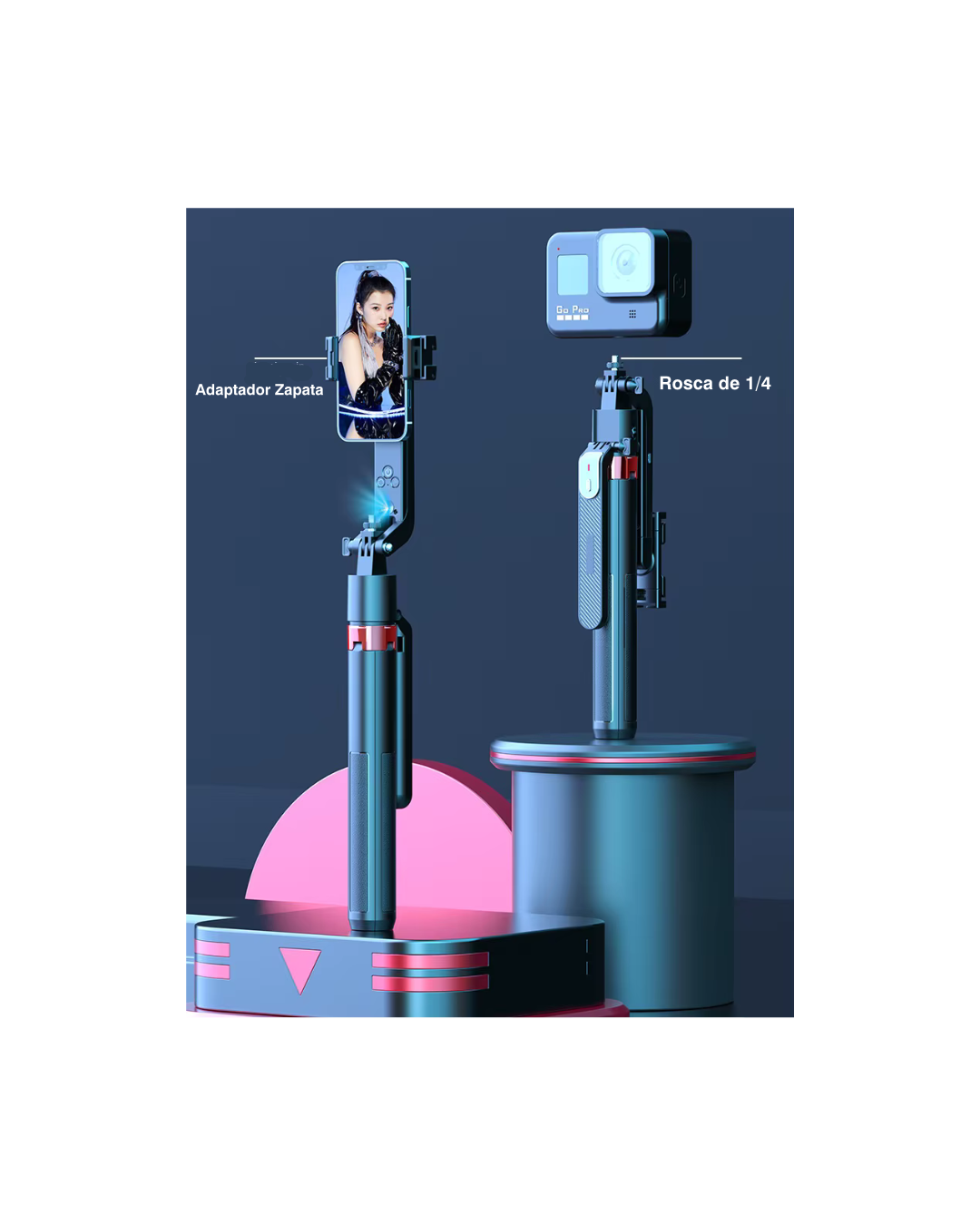 Dale un upgrade a tu contenido con el Palo Selfie Stick Trípode que lo tiene TODO: seguimiento automático, estabilizador de imagen y una altura extendida de 1.80 metros para capturar cada ángulo sin esfuerzo.