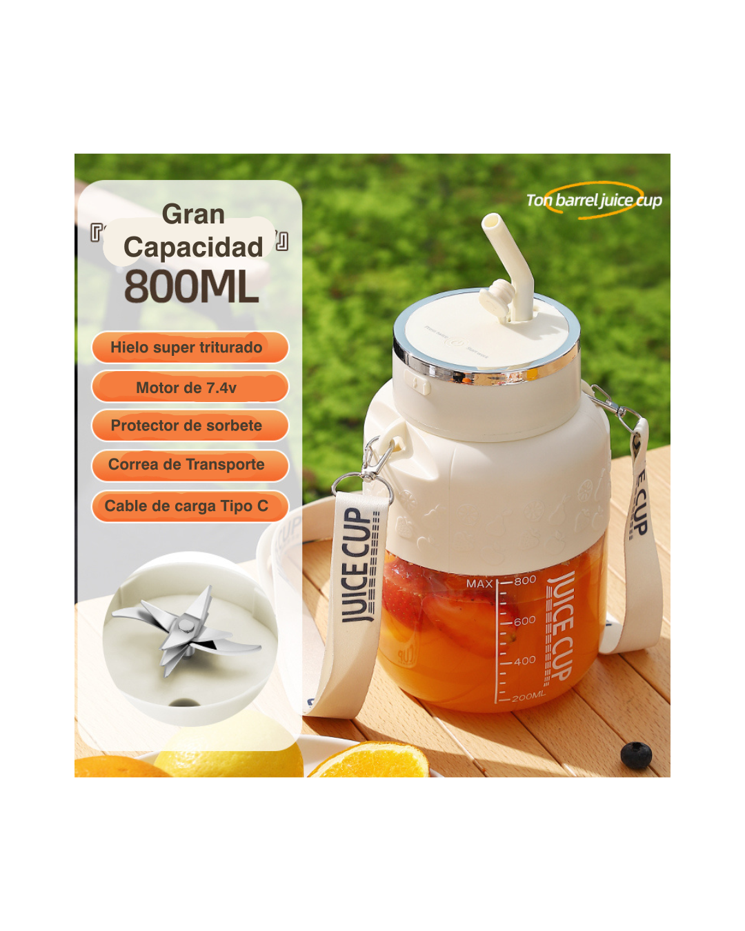 Vaso Barril Juguera Portátil 800ml Con Sorbete y Correa Recargable