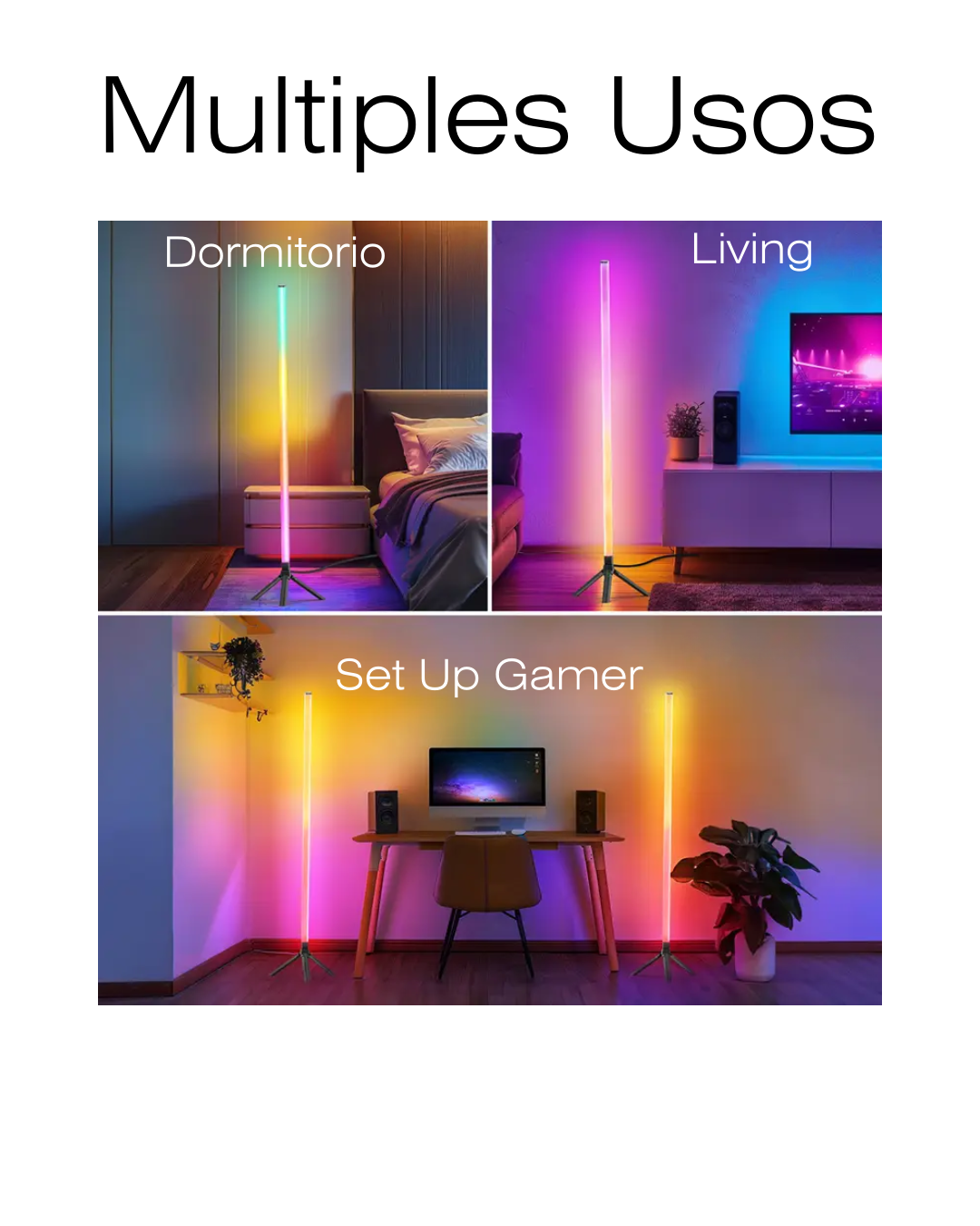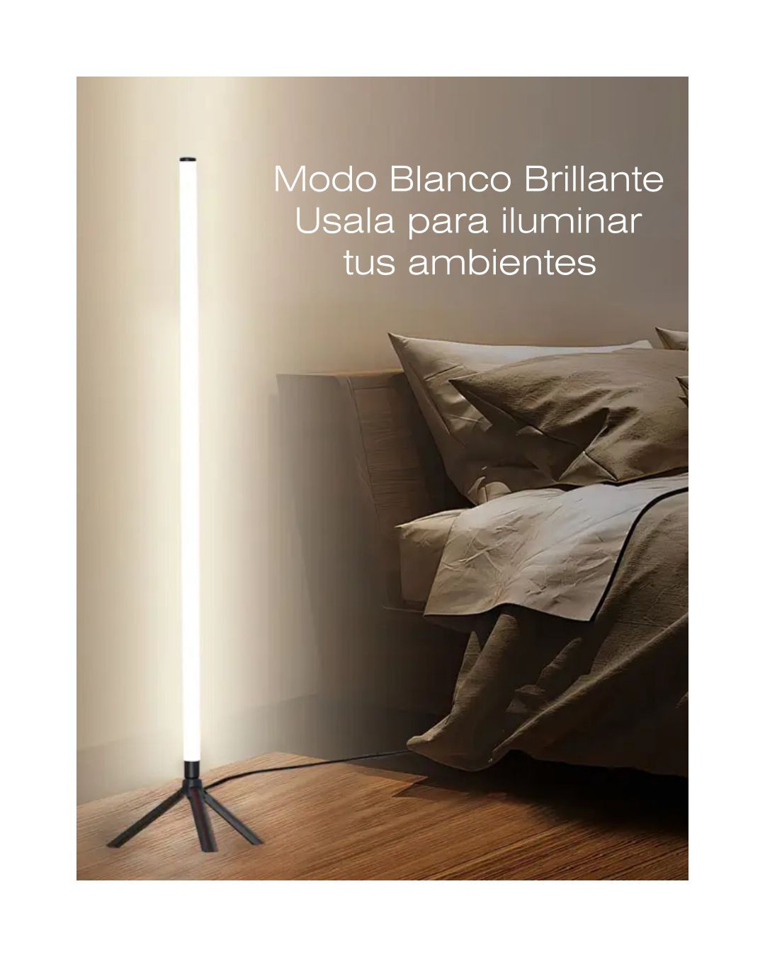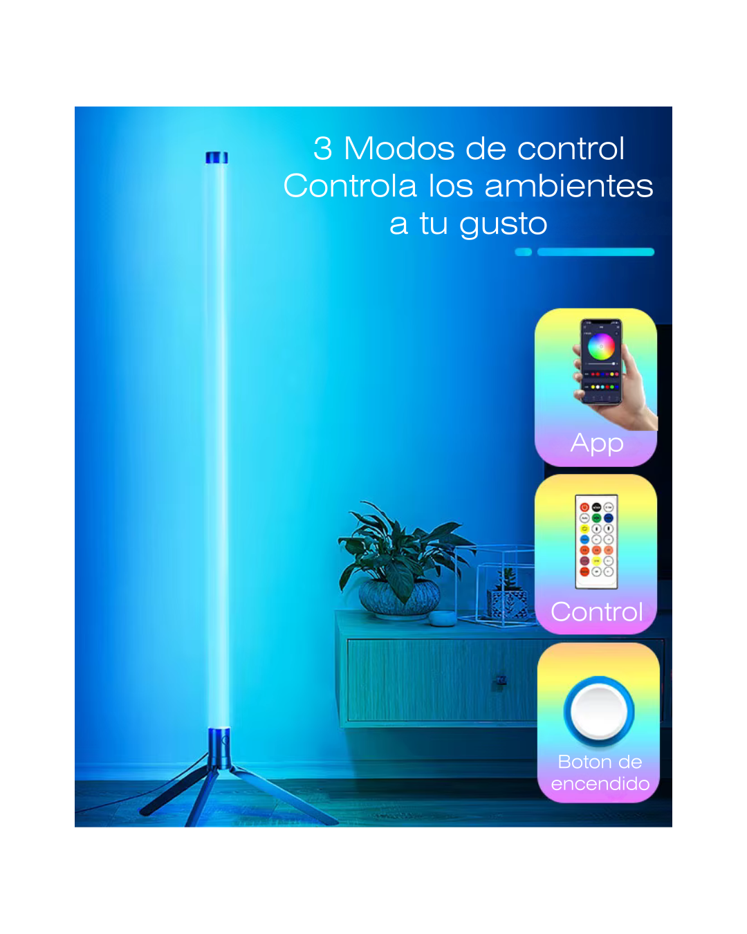 Iluminá tu espacio con estilo minimalista. La lámpara de pie esquinera LED RGB de 110 cm crea una ambientación envolvente para living, dormitorio, setup gamer o estudio, ocupando muy poco espacio en la esquina.