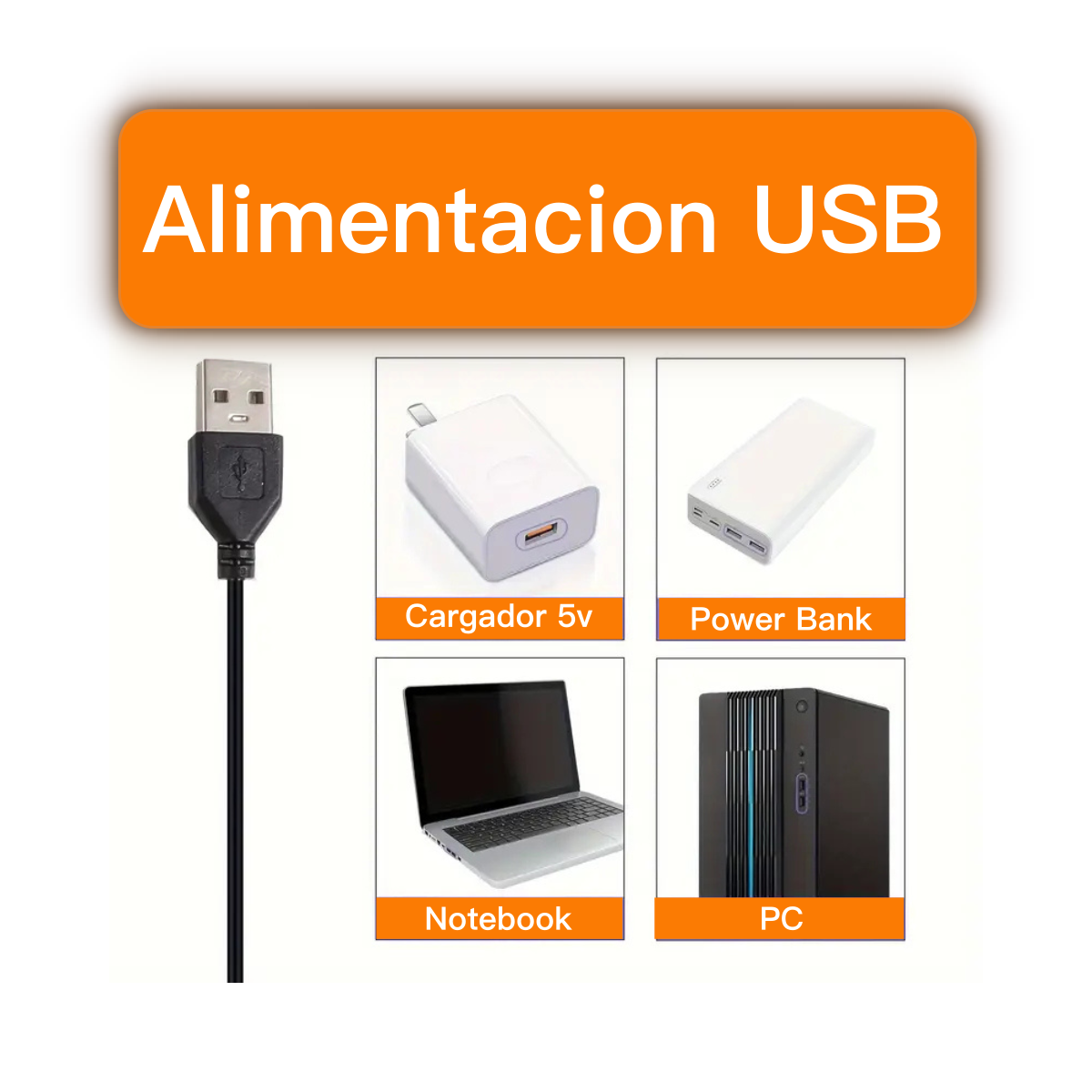 AlimentaciĂłn USB 5V (cargador, powerbank o PC)
