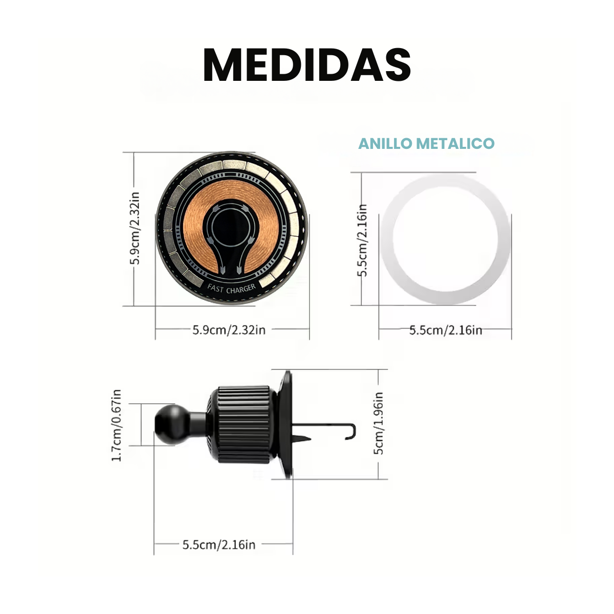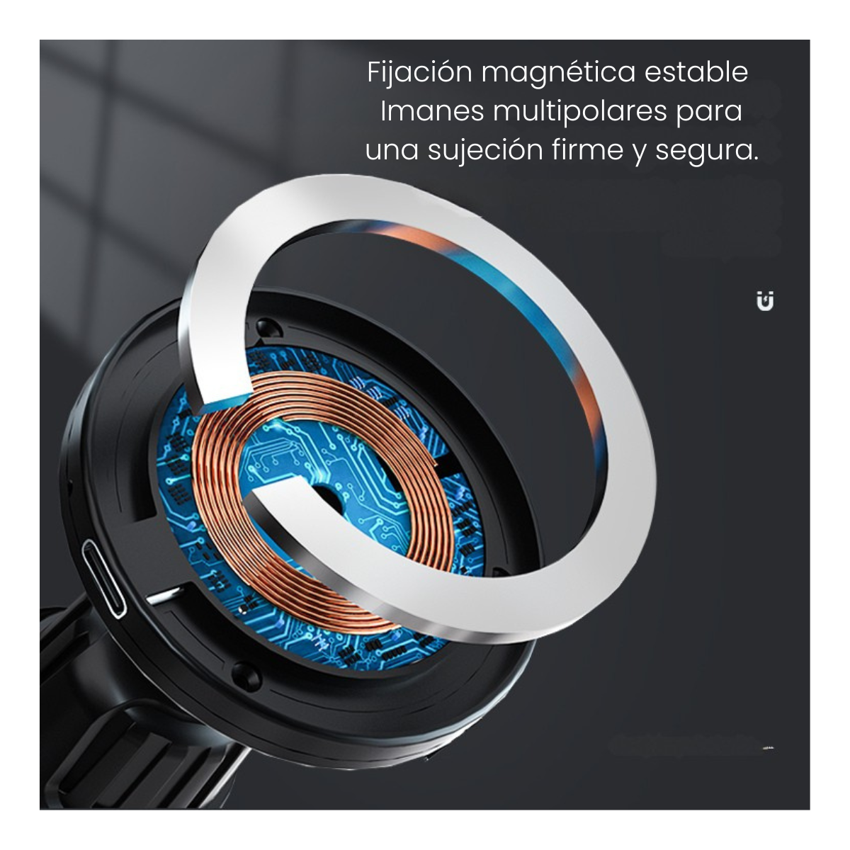 Incluye aro metalico adhesivo para celulares sin MagSafe