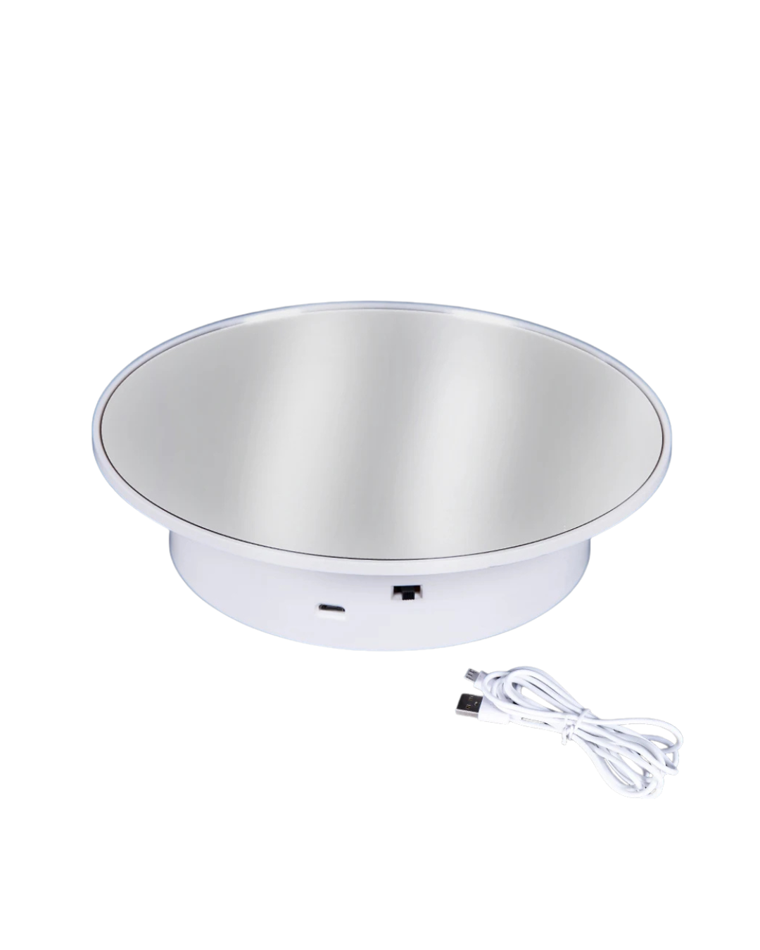 Mejorá tus presentaciones y llevá tus fotos y videos a otro nivel con la Base Giratoria 360° Espejada Exhibidora.