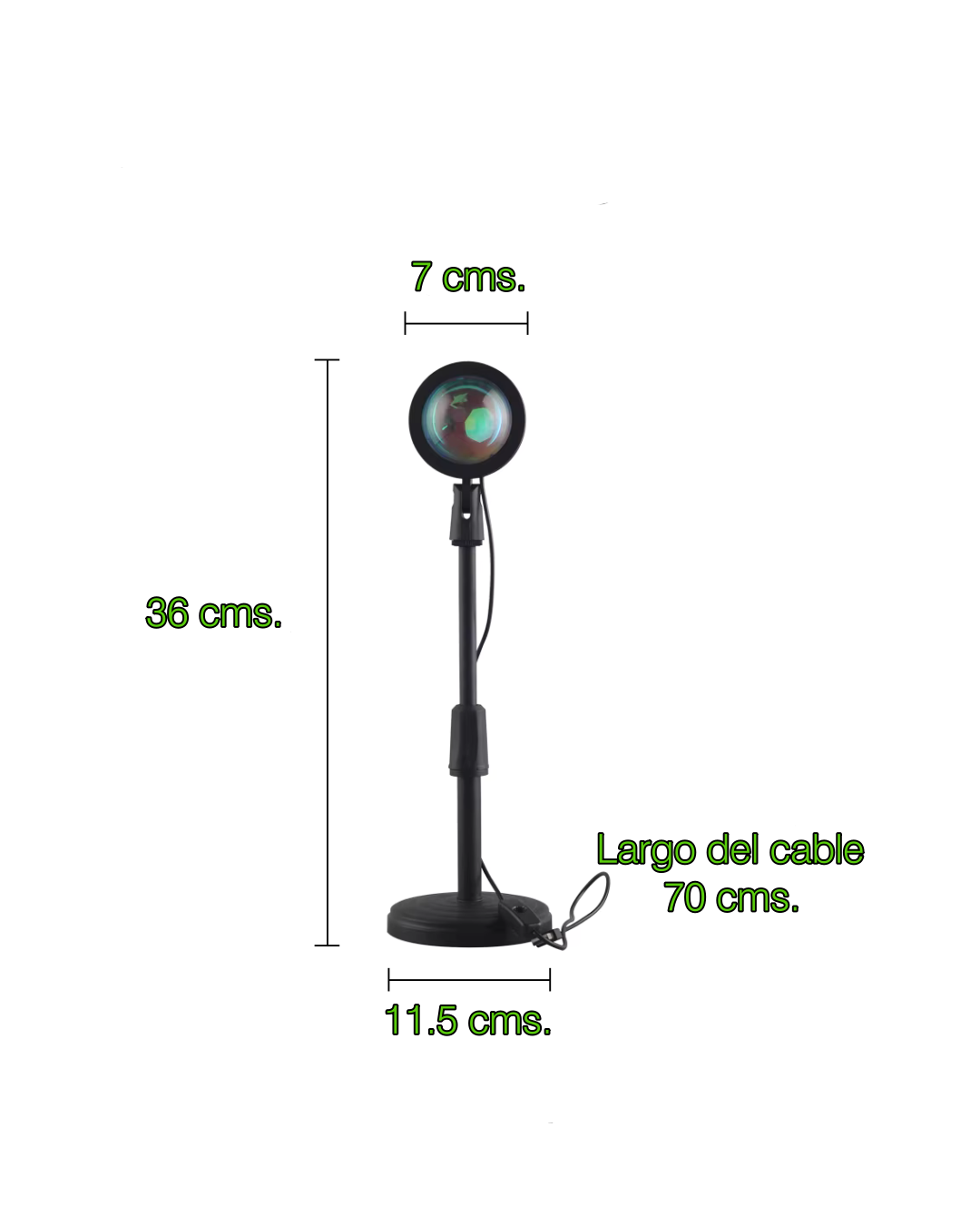 Ilumina y decora tu espacio con una luz cálida tipo atardecer que transforma al instante dormitorios, livings y rincones de trabajo. Su sistema de carga rápida por USB y su cabezal giratorio 180° te permiten crear una atmósfera envolvente en segundos, con alto brillo pero sin deslumbrar.